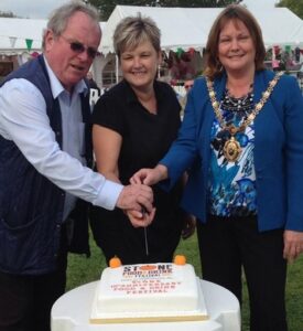 Supplied by Stone’s High Street bakery Stone Baked, the cake was cut by Festival chairman Richard Stevens, town mayor Jill Piggott and Tina Clare from the bakery.