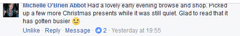 Josie who owns and runs Posy said “The late night shopping experience and Christmas markets last night was a wonderful event! It was amazing to see so many of our lovely customers and some new faces too! Everyone was in high spirits which created a great atmosphere – a fantastic night all around.”