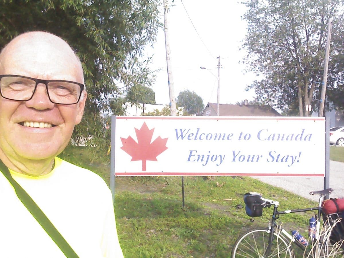 [dropcap]C[/dropcap]anada! After 3,060 miles in 33 days, without any days off, averaging just under 93 miles each day, I’ve reached the lovely home of a distant cousin on the northern shore of Lake Eire.