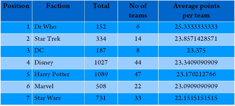 | Team Wicked | 24 |