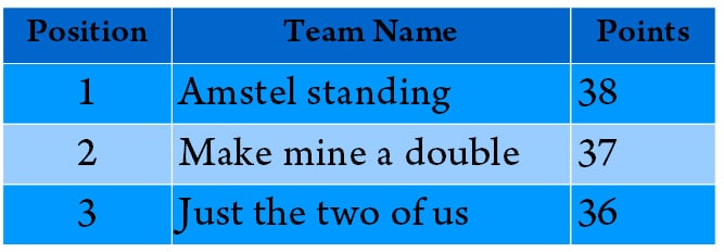 Here are the team results and the full set of questions and answers are at the end!