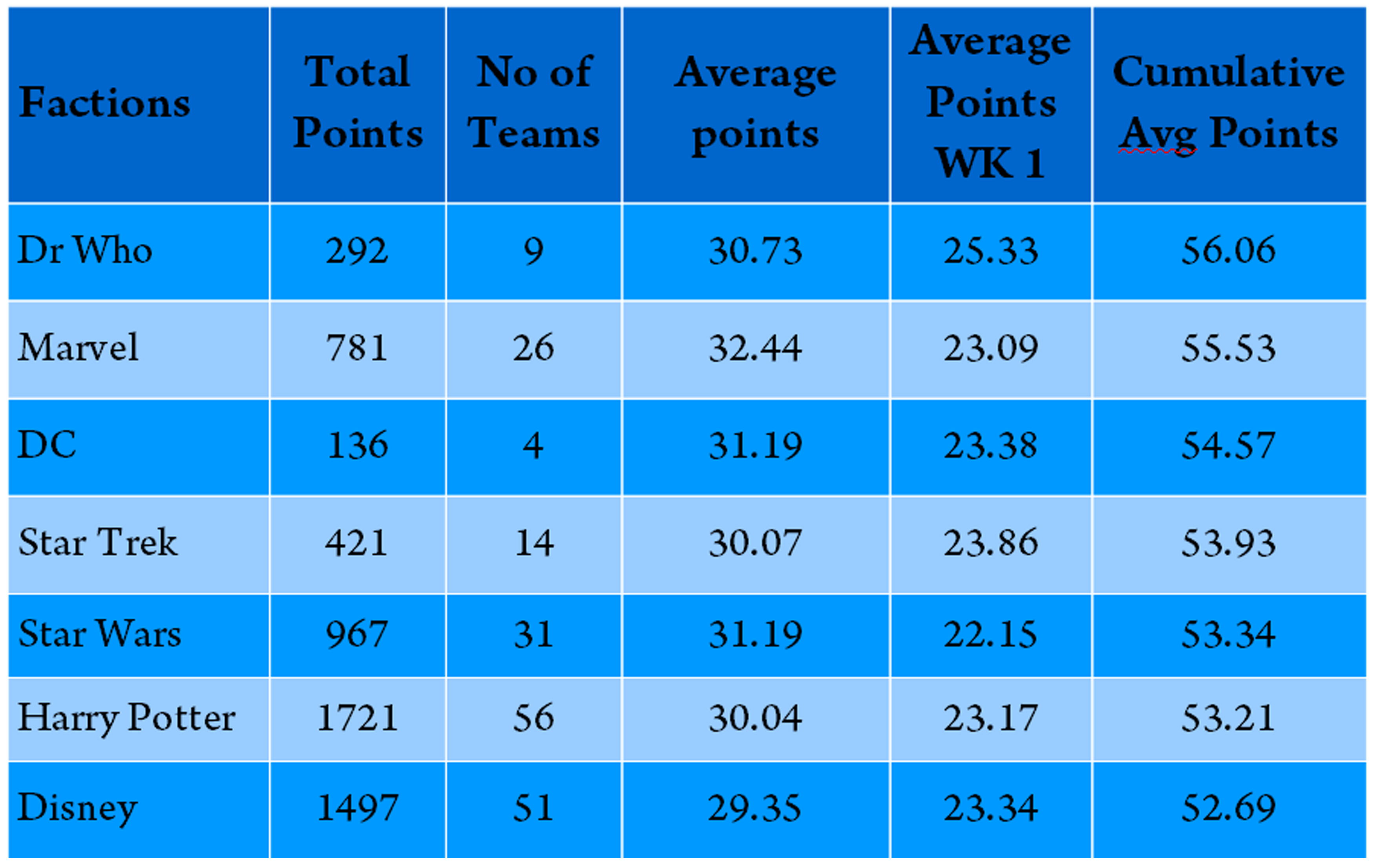 | Team Wicked | 32 |