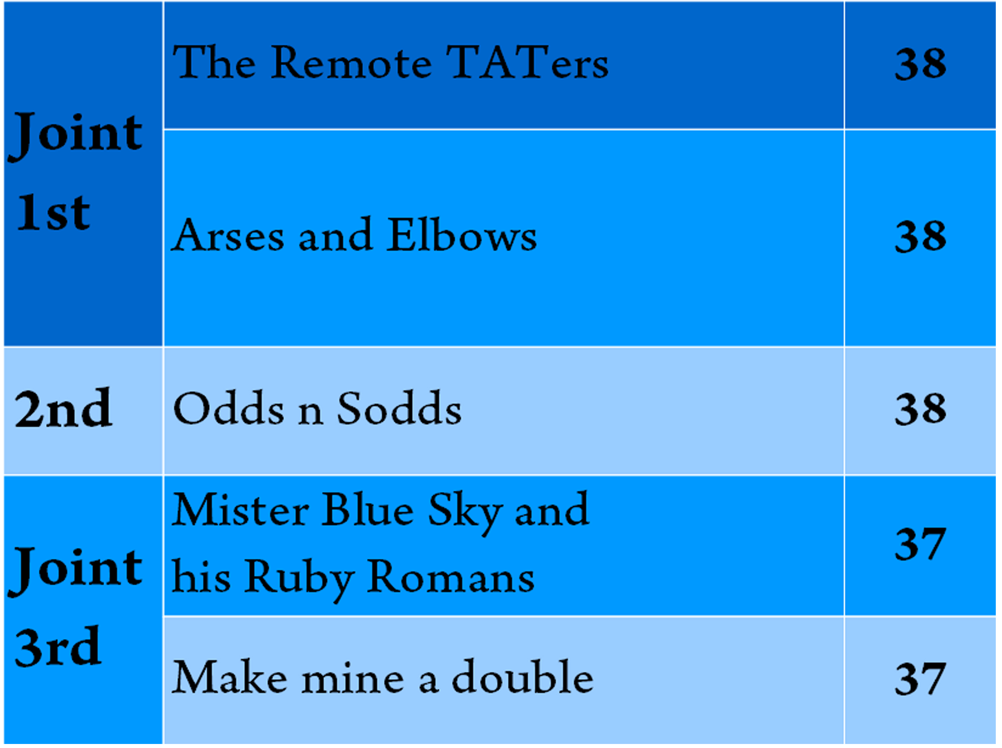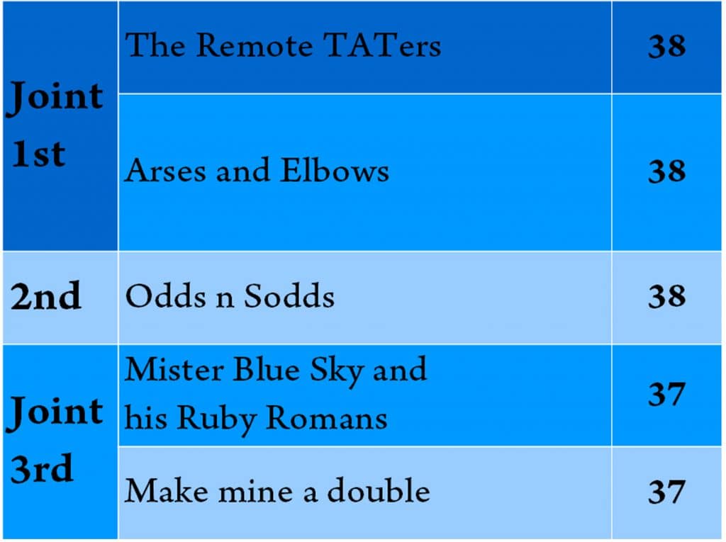 Team scores below, and a full list of the questions & answers.
