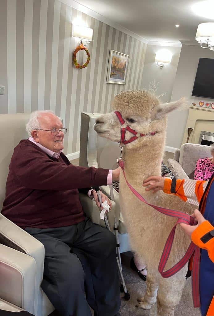 The alpacas were the stars of the show, captivating everyone with their gentle and calm nature. Even residents with severe dementia responded beautifully to the alpacas, with one resident even breaking out into song. The home’s Activity Lifestyle Facilitator, Alex Baines, described the experience as ‘absolutely amazing’ and said that ‘everybody loved them’.