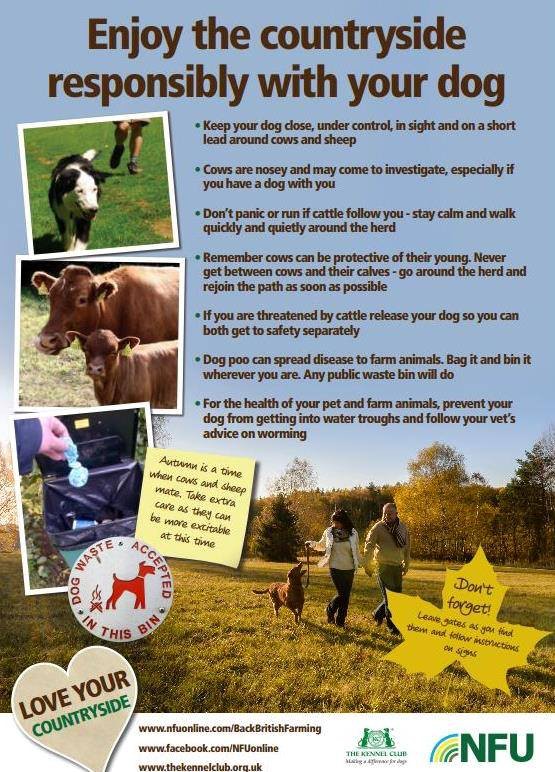 Liz Shirley said: “Although the Plot is primarily grazing land for cattle, the trustees are aware of how popular the area is to dog walkers. We are therefore taking this opportunity to inform dog owners of how they and their pets should behave, especially when cattle are present, by publicising a leaflet produced by the National Farmers Union (below).