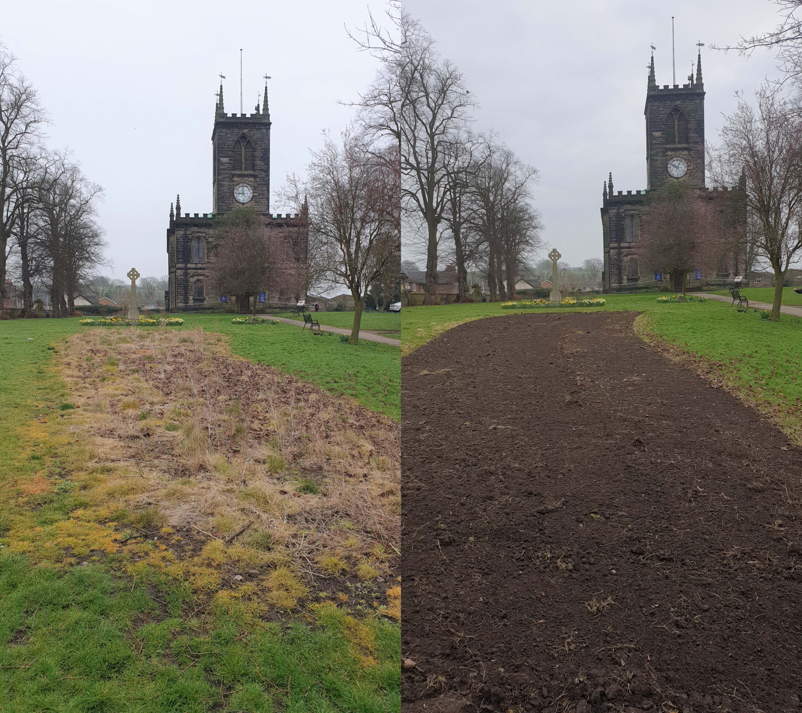 Coinciding with the Stone Spring Clean, the Stone in Bloom team have been busy cultivating the wildflower beds around Stone ready for seeding next week.