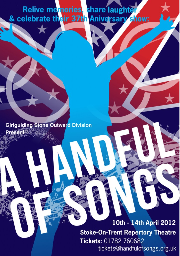 ‘A Handful of Songs 2012’ is at Stoke-on-Trent Repertory Theatre, in Leek Road, Shelton, from Tuesday 10th to Saturday 14th April each night, with a Saturday matinee performance. Tickets are available now from tickets@handfulofsongs.org.uk or 01785 760682.