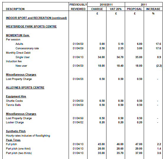 The biggest rise is for per-session gym sessions at Westbridge Park Sports Centre, which could be going up by 17.6%, from £5 to £6 for adults, and from £2.50 to £3 for concessions. The monthly direct debit, though, could only increase by 0.9%.
