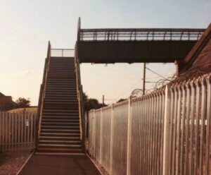Network Rail’s original plans for the footbridge did include ramped access, but these were rejected by Stafford Borough Council after residents complained about the size of the structure and its impact on the Grade II listed crossing house right next to the railway. Scaled-down plans, with no ramped access, were approved and the footbridge opened in May this year.