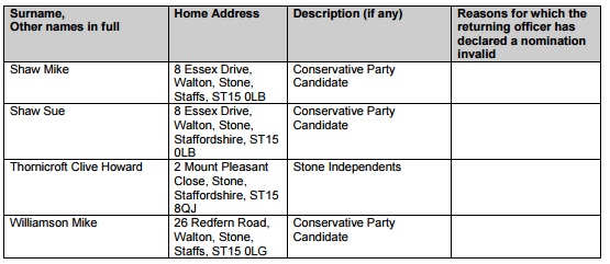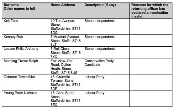 As well as the Stafford Borough Council elections on 7th May, there are elections for Stafford Borough Council and, of course, the General Election. You can see the candidates for the Stone General Election constituency HERE