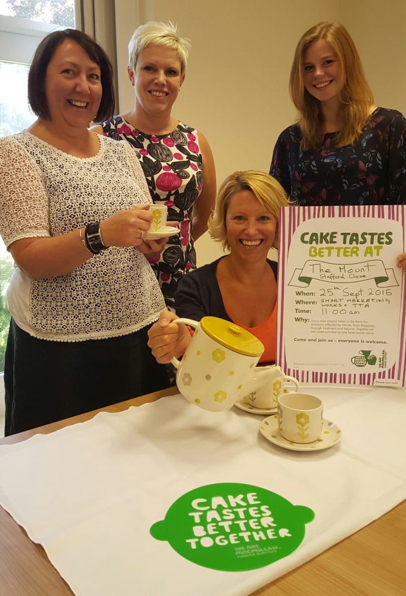 Smart Marketing Works and The Tile Association – who are both based at The Mount off Stafford Street (the big white building near the Walton roundabout) – are joining forces to welcome people to their fundraising coffee morning, which starts at 11am on Friday 25th September. There will be tea, coffee and lots of cakes – in exchange for a donation to Macmillan Cancer Support.