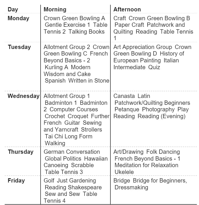 A very popular gardening group is hoping to find new leader(s) who will help to organise talks and visits. The table tennis group is so popular that they are hoping to find someone to lead a beginners group. Sadly, the member who started a sign language group is unable to continue, and the search is out for someone else who could spare a couple of hours a week to share their skills. Most groups include a refreshment break.