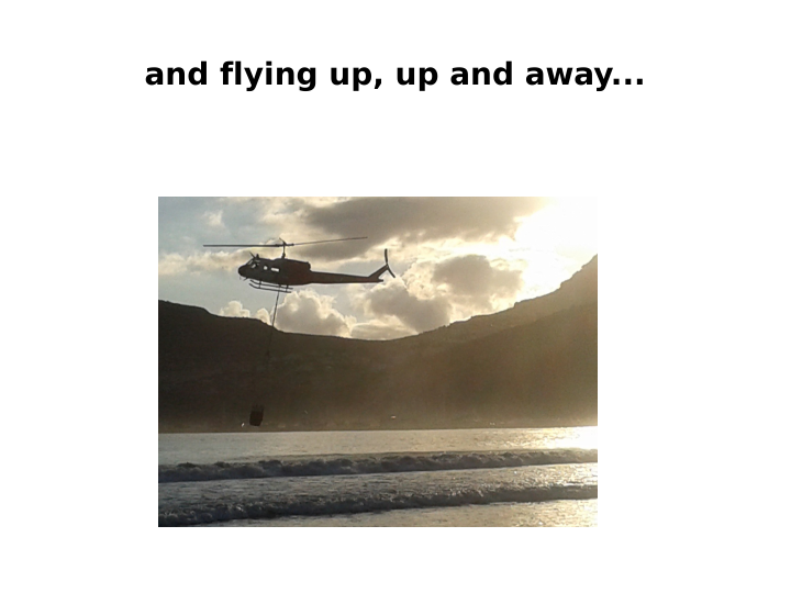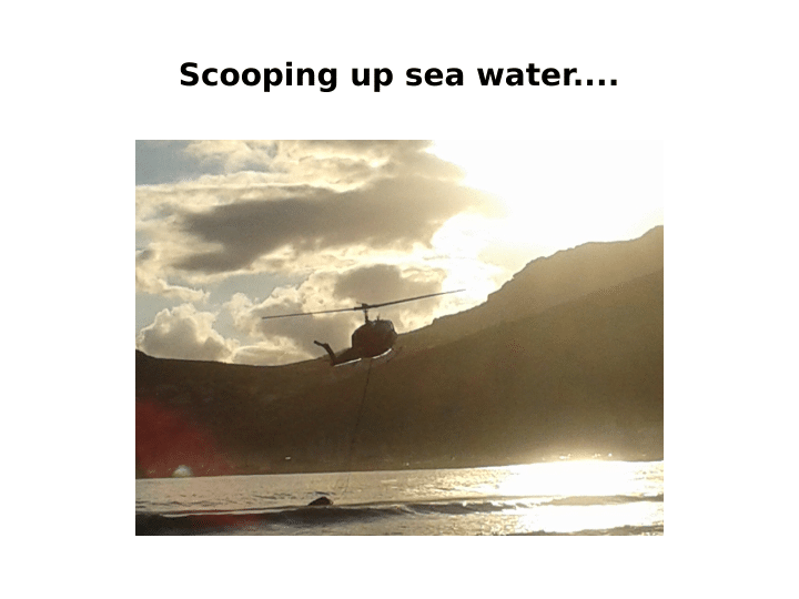 The only way to fight such fires is to use helicopters to carry water from the sea or from reservoirs up into the mountains. Each helicopter has a large bucket suspended underneath, using a unique pulley system. They hover over the water, scooping it up into the bucket, then transport the bucket up into the mountains, where they then ‘water bomb’ the fires with extraordinary precision.