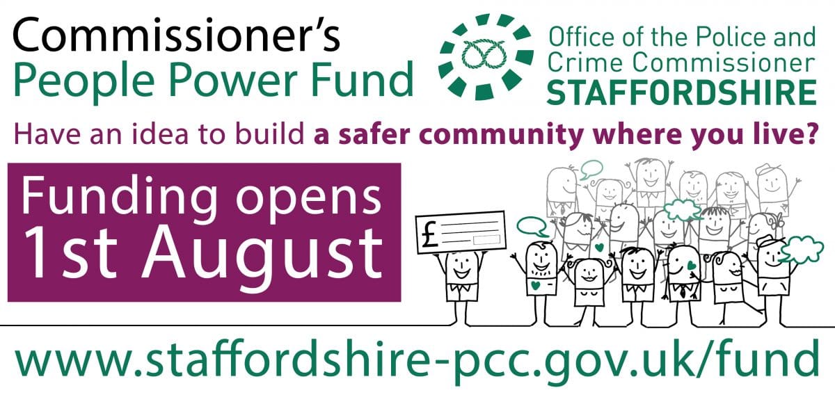 People Power applications need to be sponsored by the group’s local Neighbourhood Police Officer or Police Community Support Officer. More details, including application forms and an animated video about the fund, are available now at www.staffordshire-pcc.gov.uk/fund