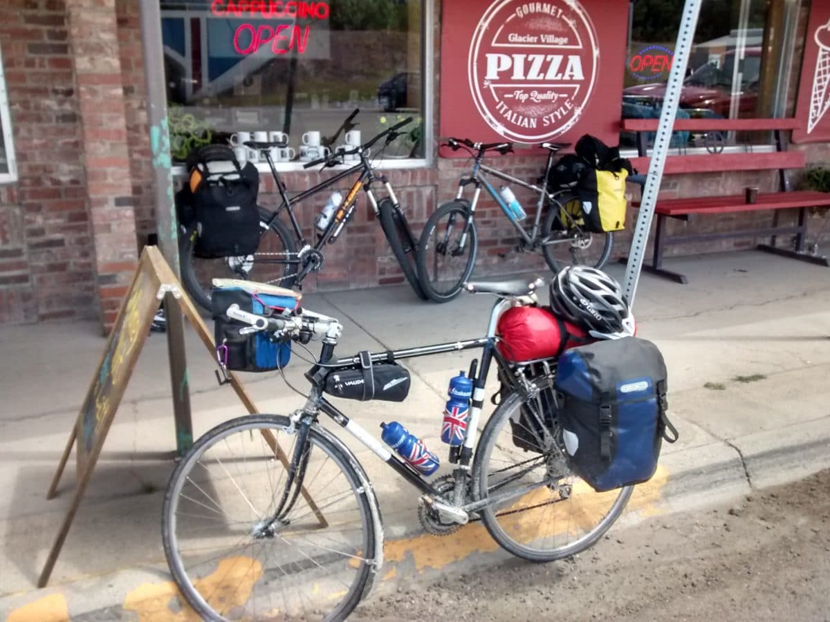 The touring cyclists in Montana are known in the roadside pubs and diners as “wallets on wheels.” Unlike the traveller in a car or motorbike, we stop in virtually every little town. Any semblance of a normal diet is forgotten as we hunt down food which gives the most calories for the fewest dollars. Anything less than six thousand calories a day means I, literally, come to a grinding halt. I often see bicycles parked outside a little cafe. It’s good to have a chat to others, learn about good campsites or road conditions all while we eat American sized portions of omelettes or pizzas.
