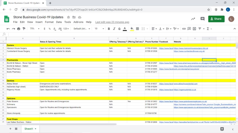Supporting local businesses is more important then ever, so keeping the sheet up to date is vital to getting information to local people. If you have issues editing the sheet, or need advice on how to include your details, please email businessinfo@alittlebitofstone.com.