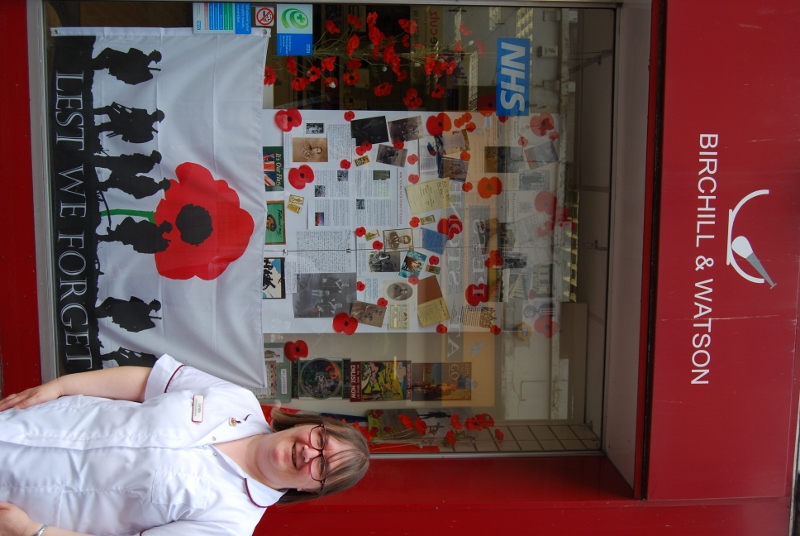 Linda Blackburn from Birchill & Watson pharmacy on Stone High Street has created a wonderful shop-window tribute for the centenary of the start of the First World War.