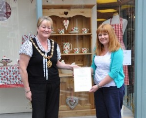 I had a working lunch hour today! I presented prizes and certificates to the winners of the Stone in Bloom shop window displays in Stone town centre. Eighteen shops took part, dressing their windows titled ‘Food For Thought’. Well done to all that took part and many thanks to Elaine and Martin Robinson and Cllr Rob Kenny.