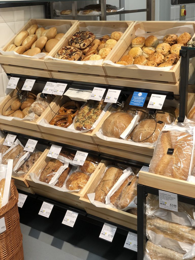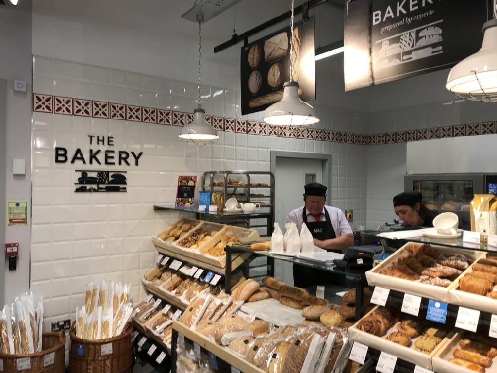 The store features on on-site bakery preparing freshly cooked bread and other baked goods throughout the day.