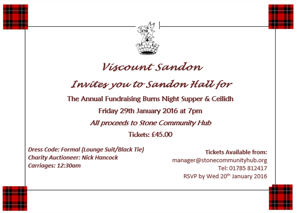 [box type=”info” ]To get your tickets – which cost £45 each – call 01785 812417 or email manager@stonecommunityhub.org by 20th January[/box]