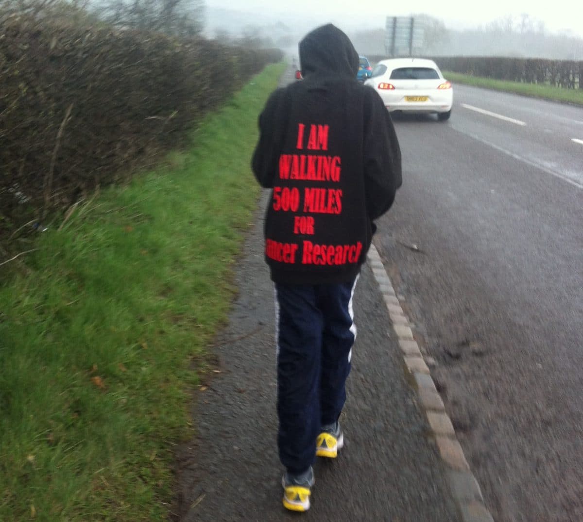 A 12-year-old Proclaimers fan from Stone has been inspired by his grandfather’s diagnosis with prostate cancer – and the lyrics of his favourite band’s most famous song – to walk 500 miles for Cancer Research UK.