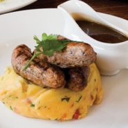 Boerwers sausages: a grilled lightly spiced beef sausage served on mashed potato with a rich tomato and onion gravy (silver award in the Innovative Pork Sausage category 2010).