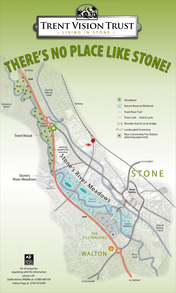 There seems to be something missing !I have read this article several times and can’t see the word SUPERMARKET mentioned anywhere. There’s already a nature reserve in place where Mr Olliver Dyke would like to build his SUPERMARKET.How benevolent of the Wildlife Trust to say it will ‘GIFT’ land to the people of Stone when we already have a beautiful area to walk which trails along the river and the canal abundant with wild life and natural flowers and shrubs. You state Town Council LEADER Philip Jones, wrong, the Mayor is the leader of the Town Council. I believe one of the areas in seperate ownership you talk about is owned by Stone Town Council and there certainly has not been any agreement done in public or behind closed doors to GIFT land to Oliver Dyke under the cloak of Trent Vision Trust. Here we go again with this time, Oliver Dyke promising a SUPERMARKET will enhance the local economy. Makes a change to the Tory led Stafford Borough Council who insisted a SUPERMARKET would give a much needed boost to the High Street when we know that a SUPERMARKET on the meadow would suck the life out of our independent High Street. I love the fact that when anyone is trying to persuade the residents of Stone what is best for us they immediately touch on the success of the Stone Food and Drink Festival, I dont see a comment of support from the chairman Richard Stevens for Oliver Dykes Trent Vision Trust. proposals. Stone in Bloom supports the environment and the charm and beauty of the town by working to make the town a fantastic place to work and visit why does this article infer Stone in Bloom are implicated, I’m on that committee and we most certainly have not discussed it. Tourism boosts the local economy not a SUPERMARKET built on a beauty spot in the town.The only one to gain anything from a SUPERMARKET will be Oliver Dyke when he deposits the huge amount of money he makes from his SUPERMARKET DEVELOPMENT into his bank account. He’s not doing this because he loves STONE he’s doing it because it will make him a very rich man.