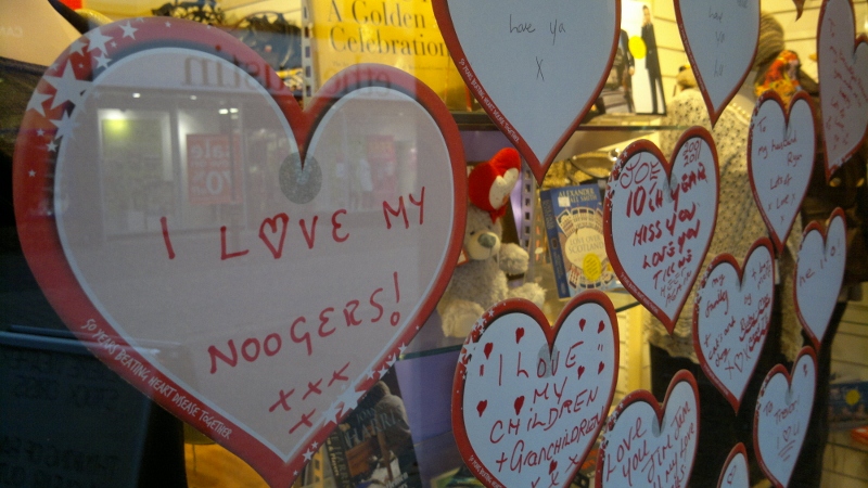 Stone’s British Heart Foundation charity shop played Cupid this Valentine’s Day by asking local people to place special Love Notes in the shop window!