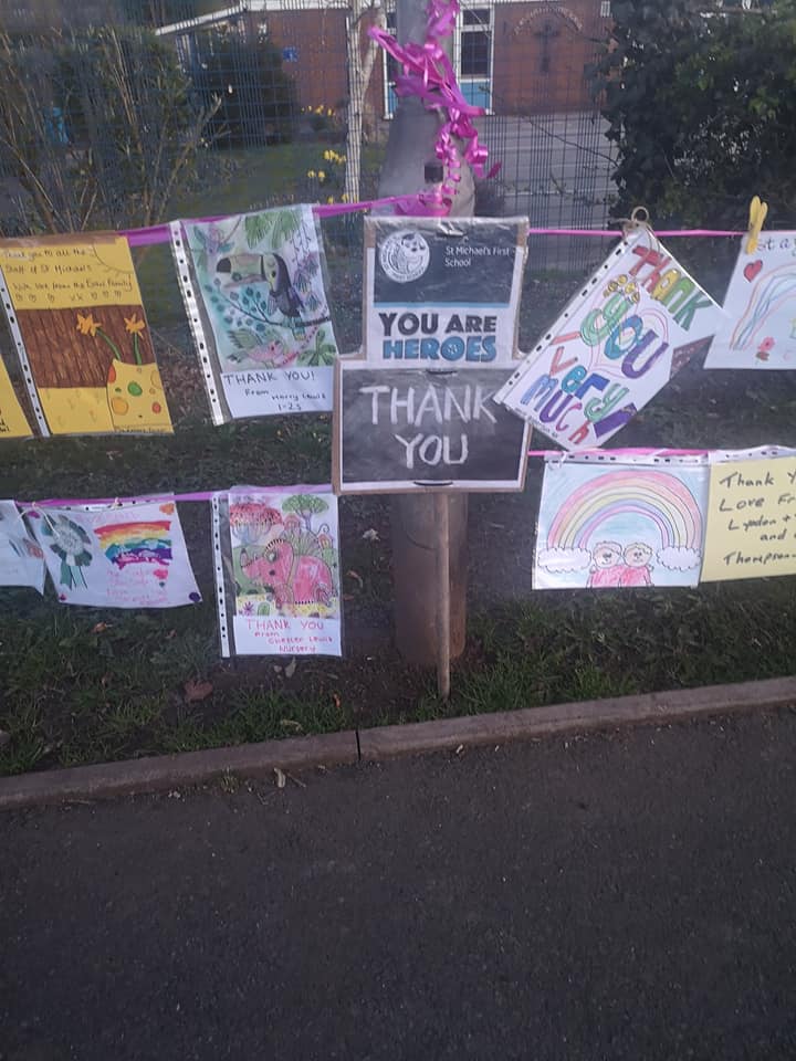 I thought that over the next two weeks on the run up to the last day of term ( if they are not open at Easter), our children could make thank you cards and pictures which could be attached to the school gates, or I will get something setup a string line at the front of school. We could do this taking social distancing into account in time slots, starting from the morning until end of school.