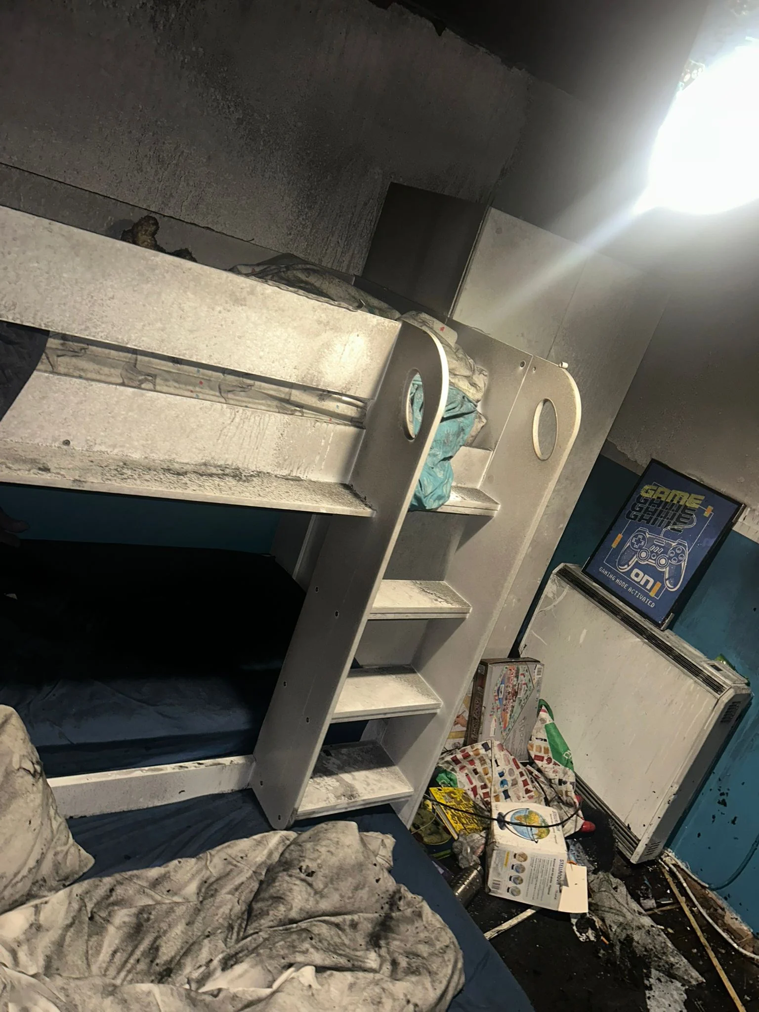 “The fire started in the three boys’ bedroom at around 6.20 pm, when the smoke alarms in our house went off and I went upstairs to investigate.”