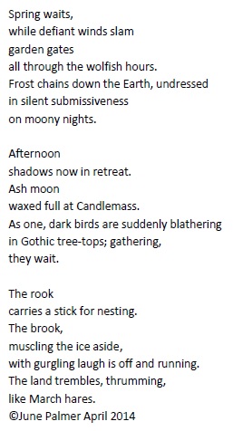Today is National Poetry Day, so it’s lovely to be able to share some poems from Stone’s June Palmer.