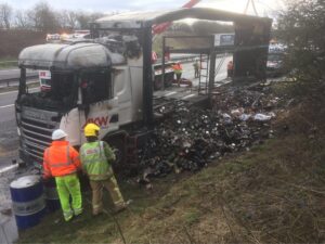 Staffordshire Fire and Rescue Service were called out to deal with the lorry blaze at around 5:13am with three fire engines attending from Stafford, Stone and Eccleshall. A further water carrier vehicle came over from Cannock to assist with the fire fighting effort.