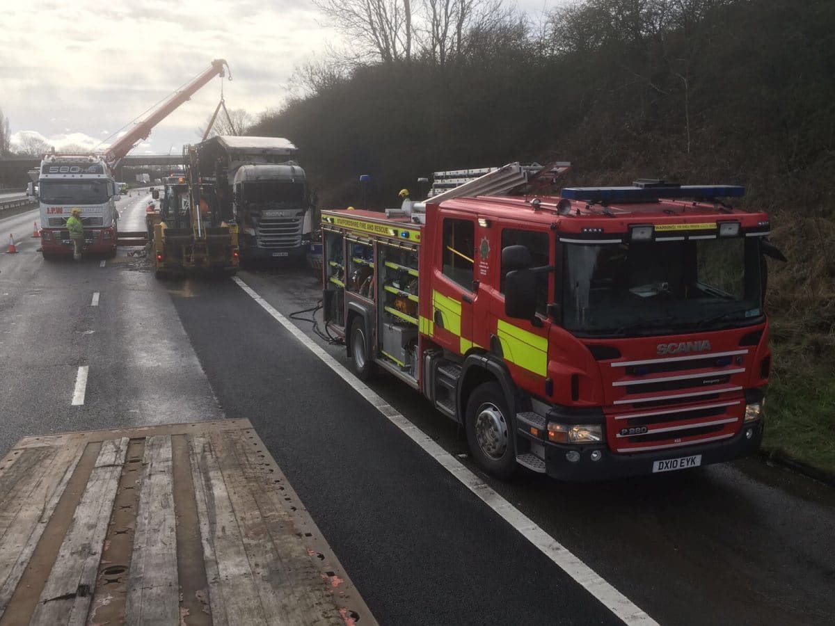 Firefighters are working in partnership with colleagues from the Highways Agency, who are managing the road closures, carrying out recovery work and assessing the damage to the carriageway. It is expected that the carriageway will remain closed well in to this evenings rush hour so Stone and the surrounding routes will remain congested at peak times.