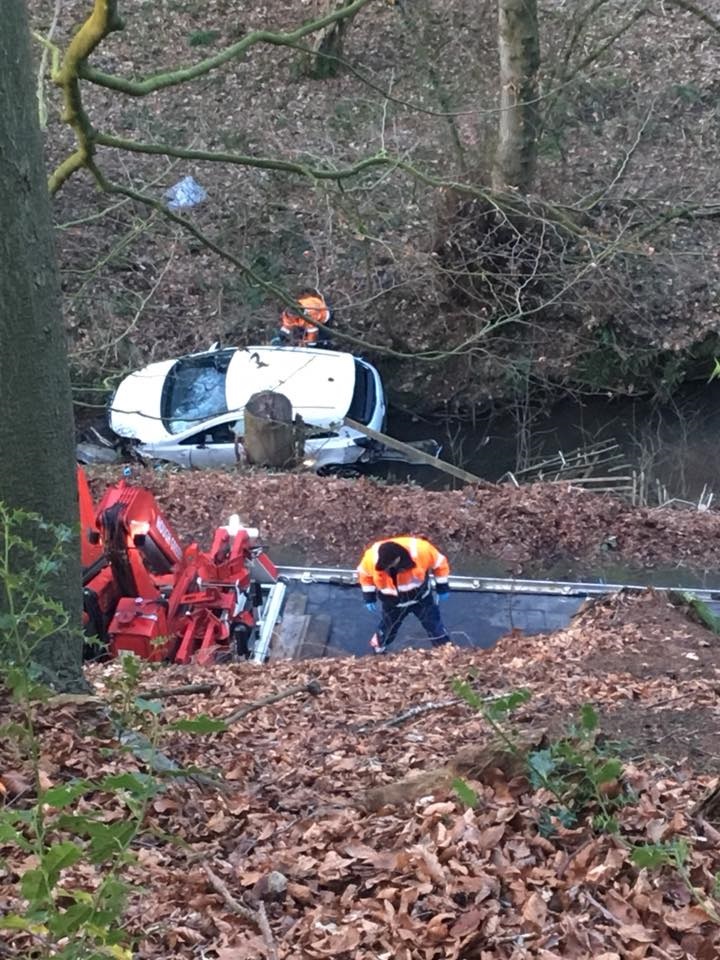 Upon arrival, officers observed that a Vauxhall Corsa appeared to have failed to take the bend. The car had crashed through the barrier and down the embankment into the river below.