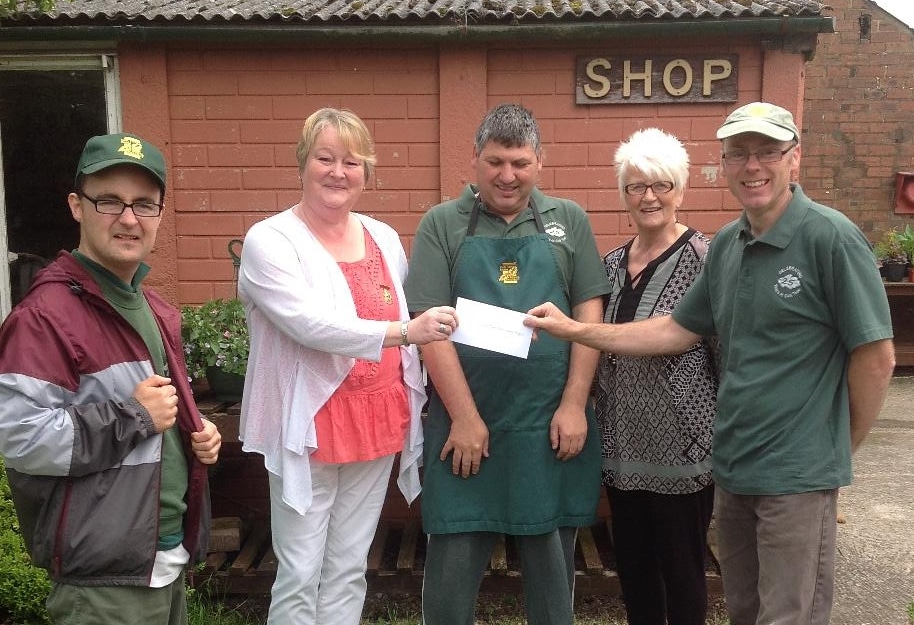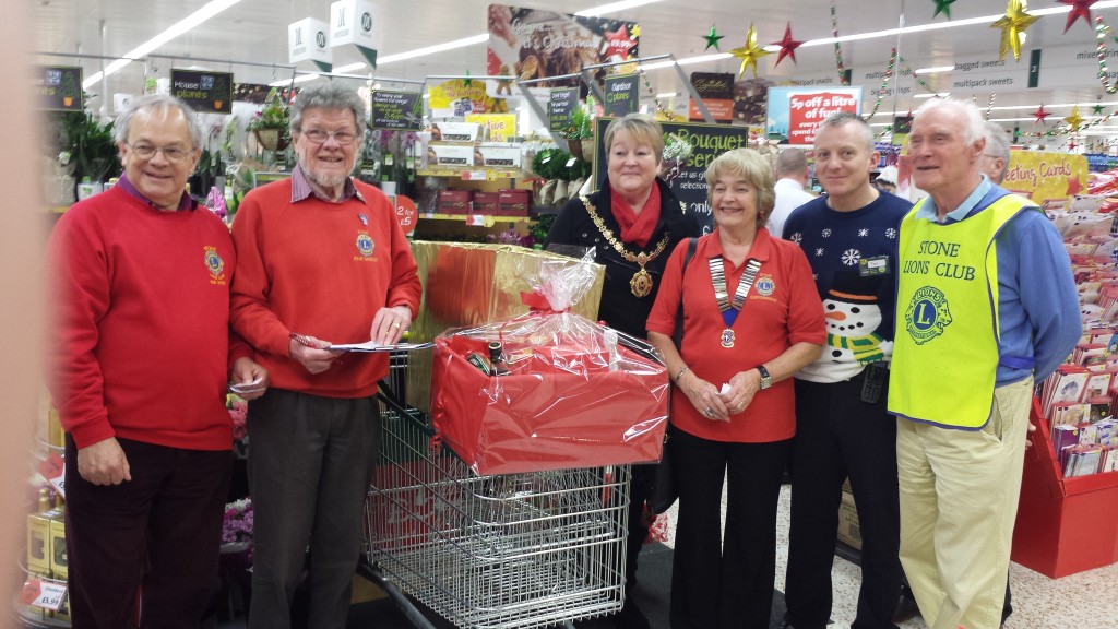 Councillor Mike Shaw (third from left) poses for his final act as Stone's Mayor by handing over the funds he…