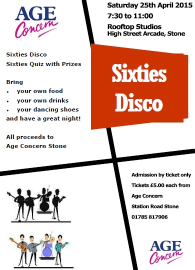 Stone's Age Concern are having a Sixties Night at Rooftop Studios in the town on Saturday 25th April. There'll be a…