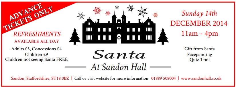Children can visit Santa Claus in the magical setting of Sandon Hall on Sunday 14th December. Children will be able…