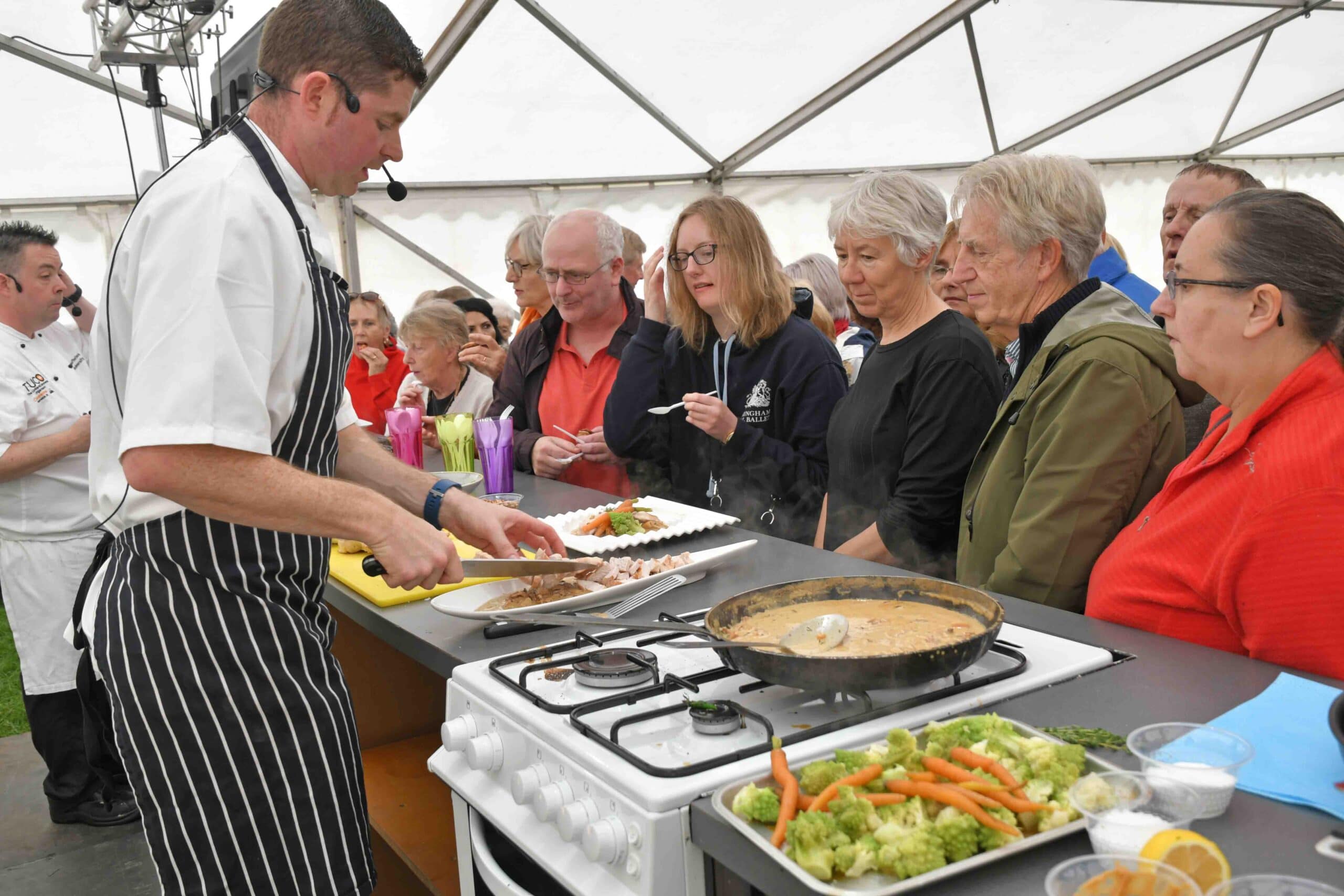 Over the weekend, several well renowned local chefs will appear in the festival kitchen to give demonstrations. These are FREE to attend and can be a great way of grabbing a seat and learning something new.