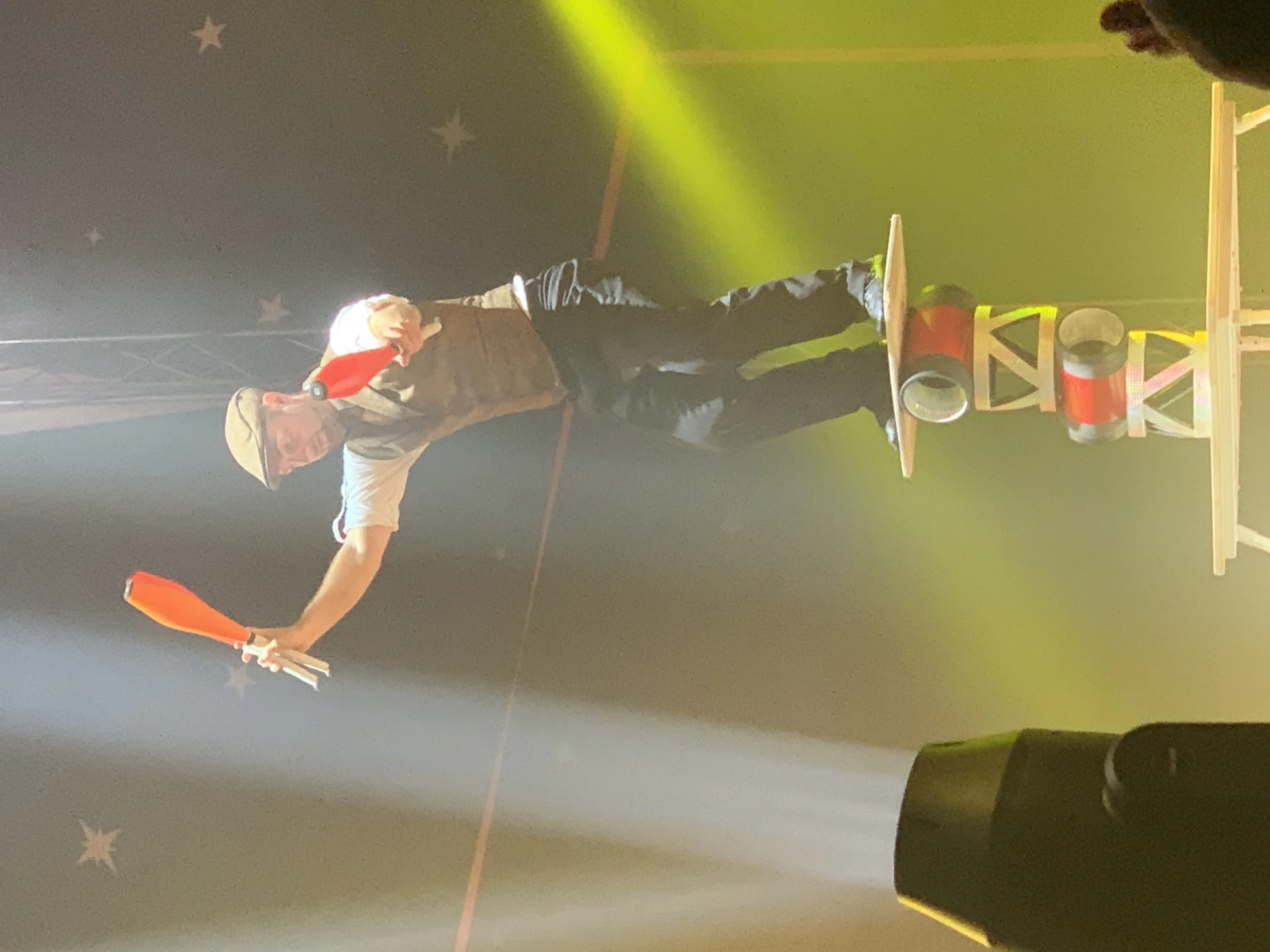 The show features two daring and graceful young women with separate displays of aerial acrobatics, juggling (at a higher level than your correspondent!), a breakdancing “elephant” and and an escaping “gorilla”