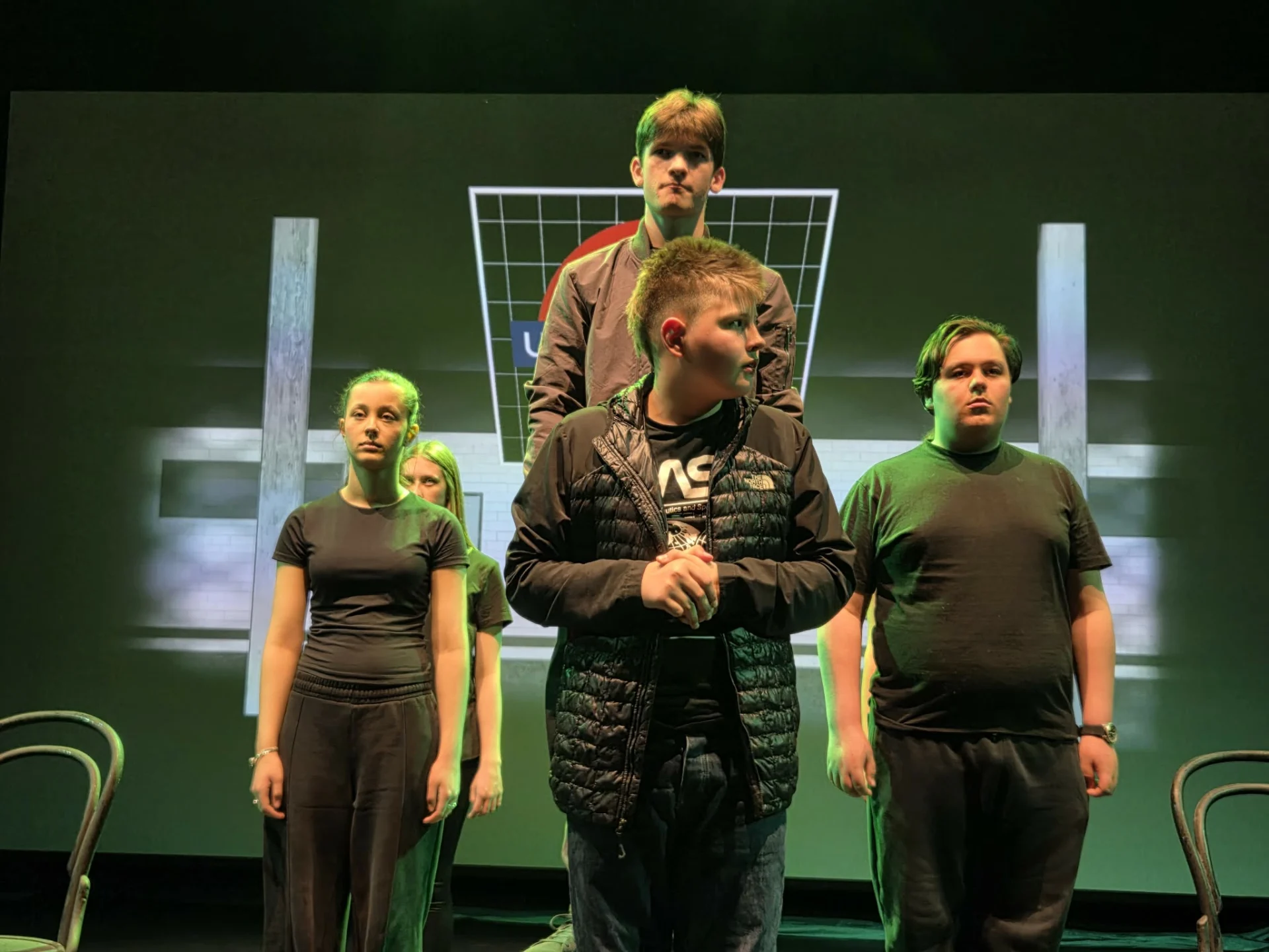 The ensemble delivers an impressive performance across the board, particularly given the scale of the challenge. The script demands a significant volume of lines and emotional range, and the young cast rises to meet it. Freddie Wood, as Christopher Boone, carries the production with remarkable focus and stamina, navigating the role’s complexities with confidence. Ellie Wikshaw-Rathbone provides strong support as Siobhan, grounding the narrative with clarity and warmth.